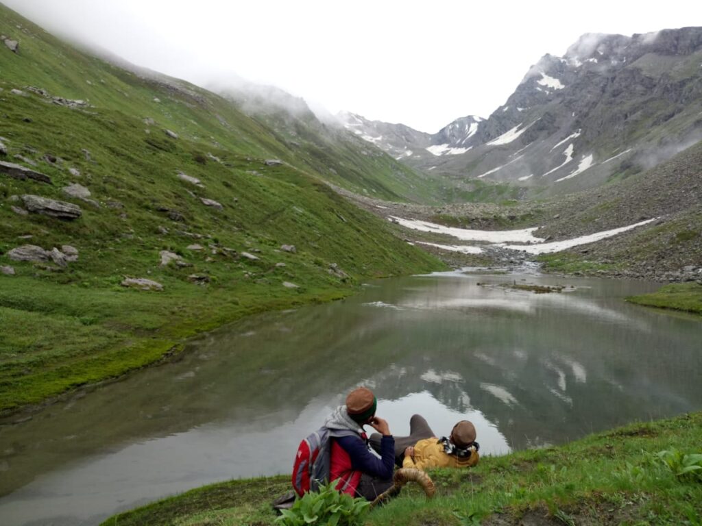 After setting up the camps at Litham Thach, we would take a detour to the Chandranahan lake. A ~1-hour hike would take us to the shore of Chandranahan lake — the source of the Pabbar river. Overnight camping at Litham.