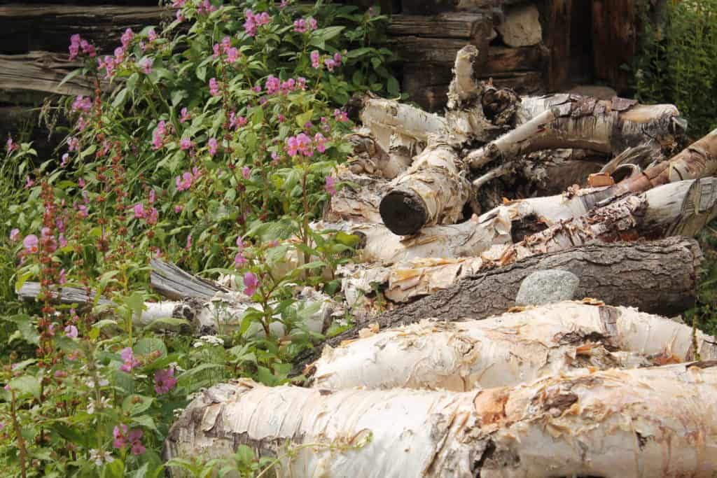 The Birch tree logs. It’s is a tree native to the Himalayas, growing at elevations up to 4,500 m. The white, paper-like bark of the tree was used in ancient times for writing Sanskrit scriptures and texts.