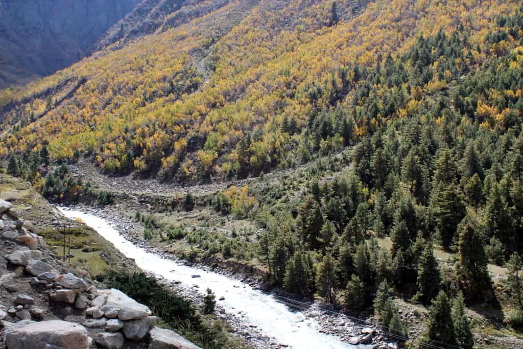 The wide U-shaped valley of Baspa offers a panorama of the colored landscape in different seasons. In August and September month the valley appears a green oasis in desolate Kinnaur region.