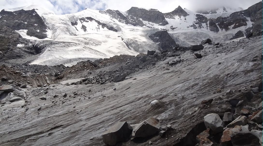 It is a strenuous walk across boulder zones, shale, scree slope, and loose rock for about 4-5 hours before we reach the glacial snowfield.