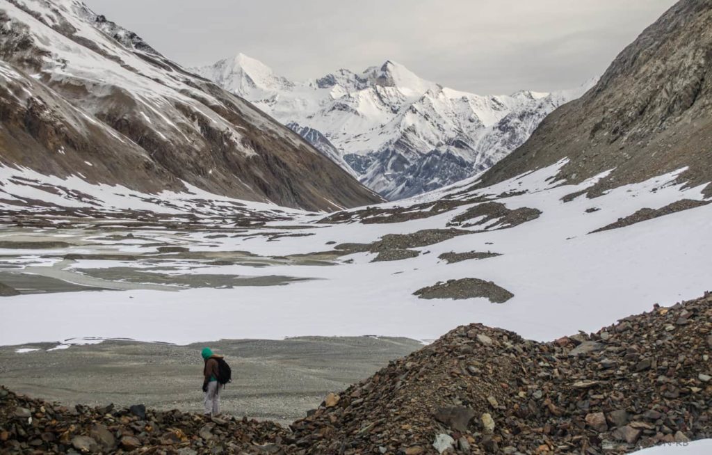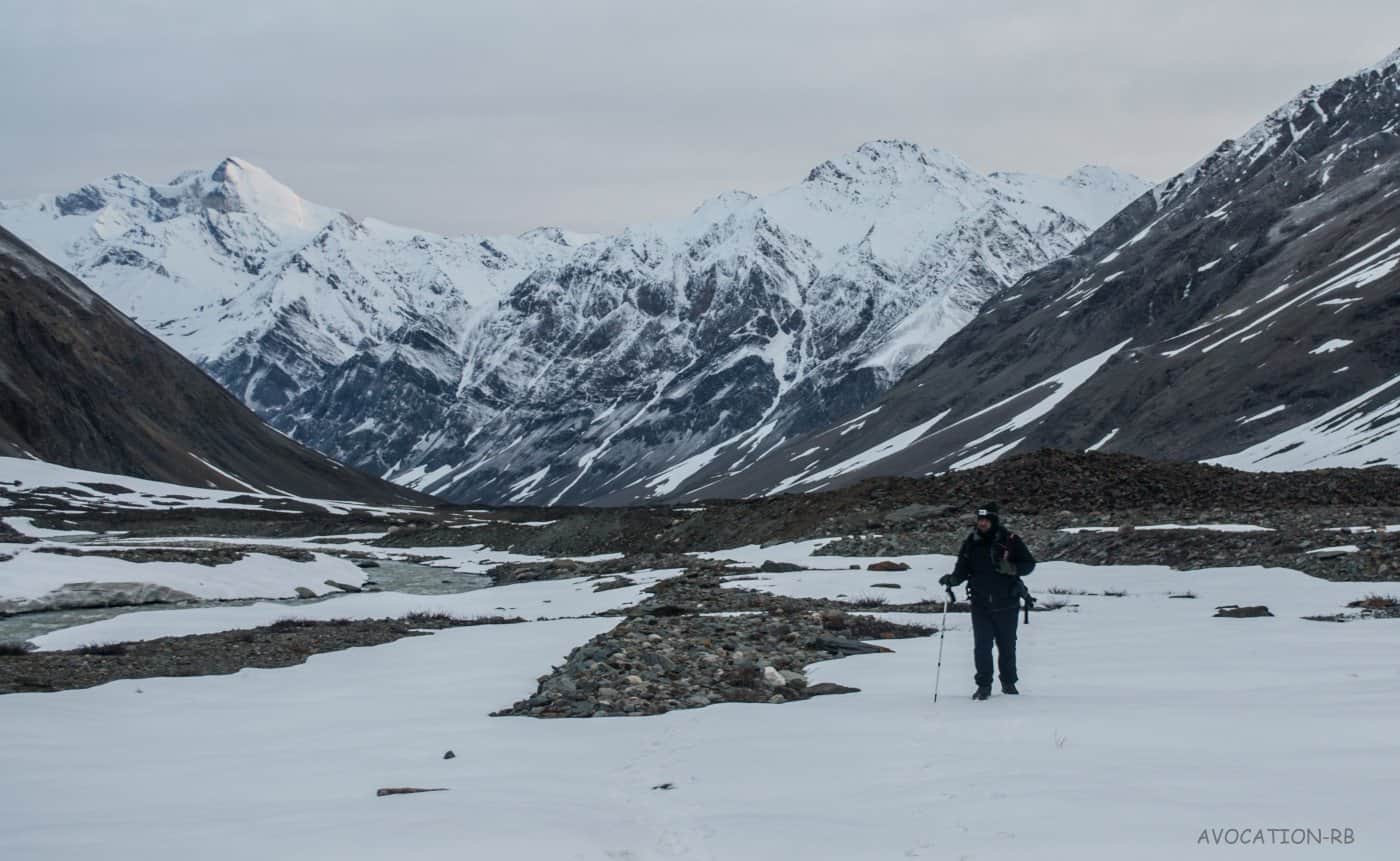 We woke up at 4 am and had Chapatis for breakfast with Achar and papaya porridge. It had snowed a lot. The first step of the day was snow. There were pug marks of some kind of animals parallel to us. First, we presumed it to be snow leopards……LOL. But it may have been wild fox’s, we partially confirmed after immense discussion with each other. A few days after looking at the photographs, we thought that it would be some bird’s footsteps. Maybe!!!