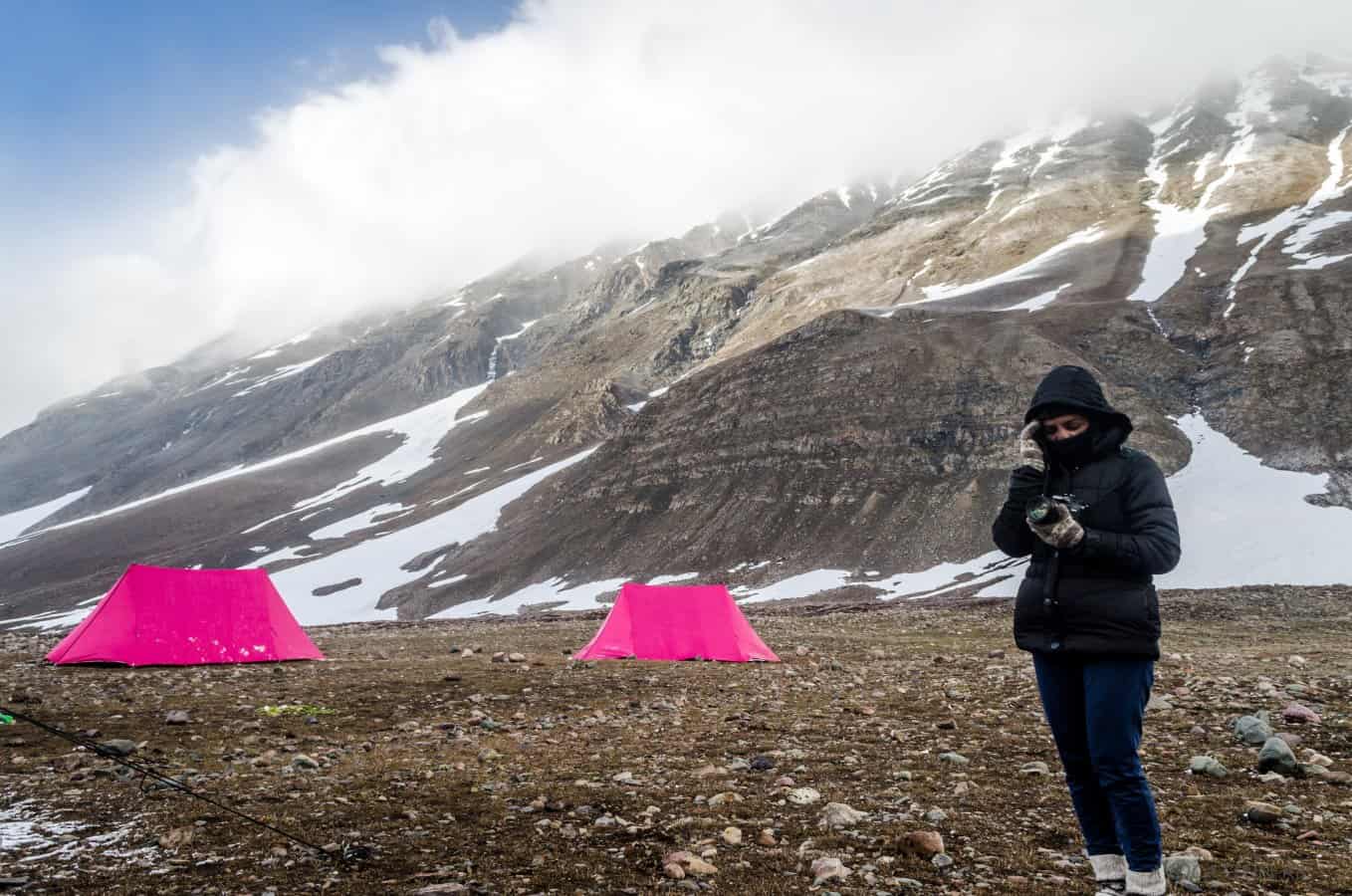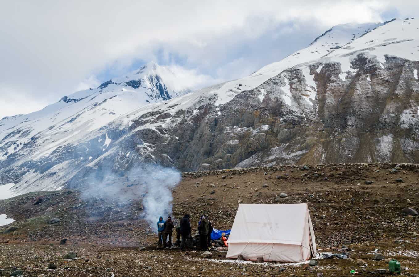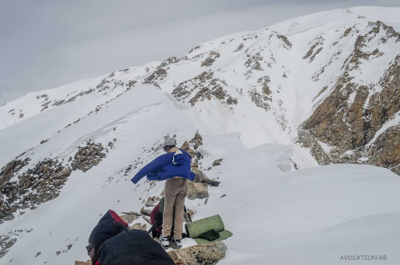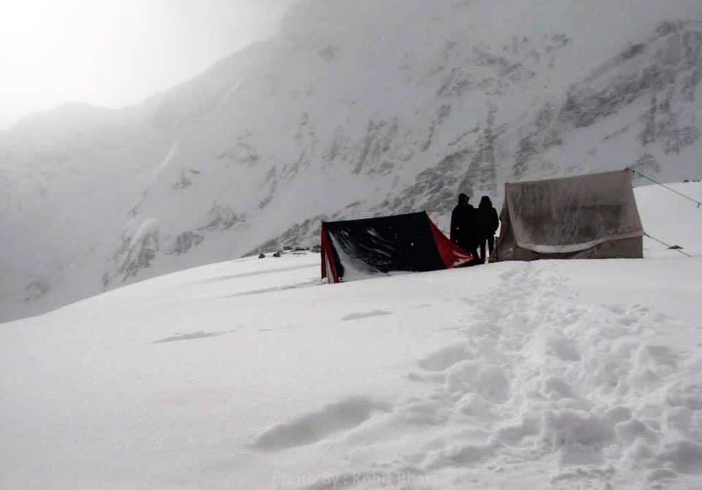 We reached at 2 pm. It was a task to beat the soft snow of 2ft, so that our tent could easily be pitched on hard snow. That day, one porter suffered from Hypothermia and he went mute. He was shifted to the kitchen tent as soon as the tent was ready and was made to rest near the cooking stove for the warmth. We gave him the warmee self-heating pouch. He felt okay later after gulping hot soup and hot water. So white-out conditions, freezing wind, Porter’s health, Highest Camp at 5100m, wet sleeping bags, frozen tents, snow melted “yuckk” water, etc. made it totally worth.