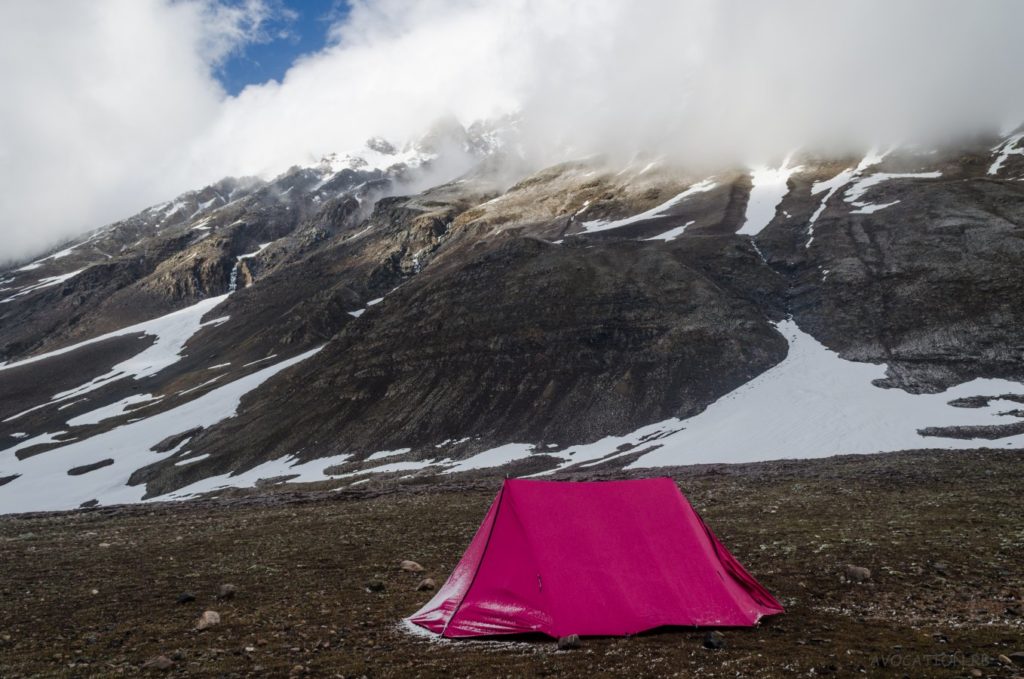 It took 2 hours for the porters who were behind us. Finally, at 1:00 pm, we pitched our tents with all the wet boots and wet bags.