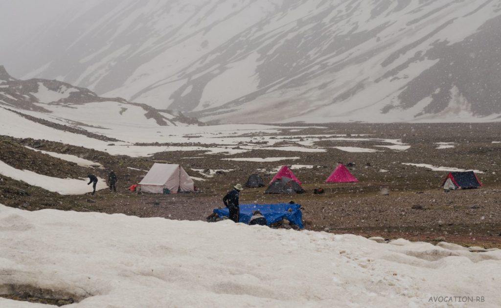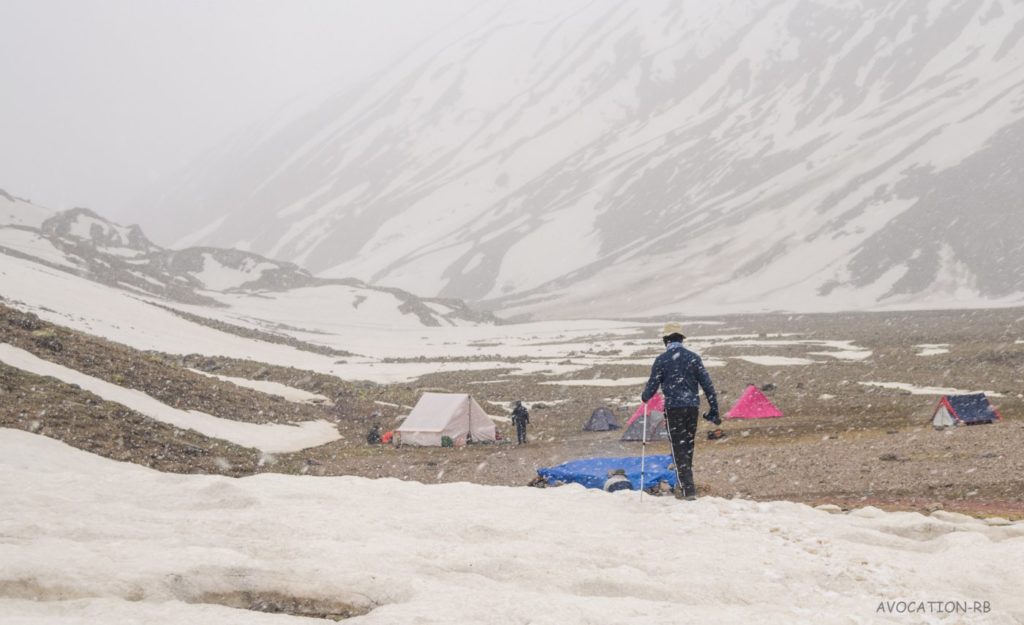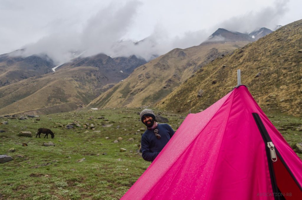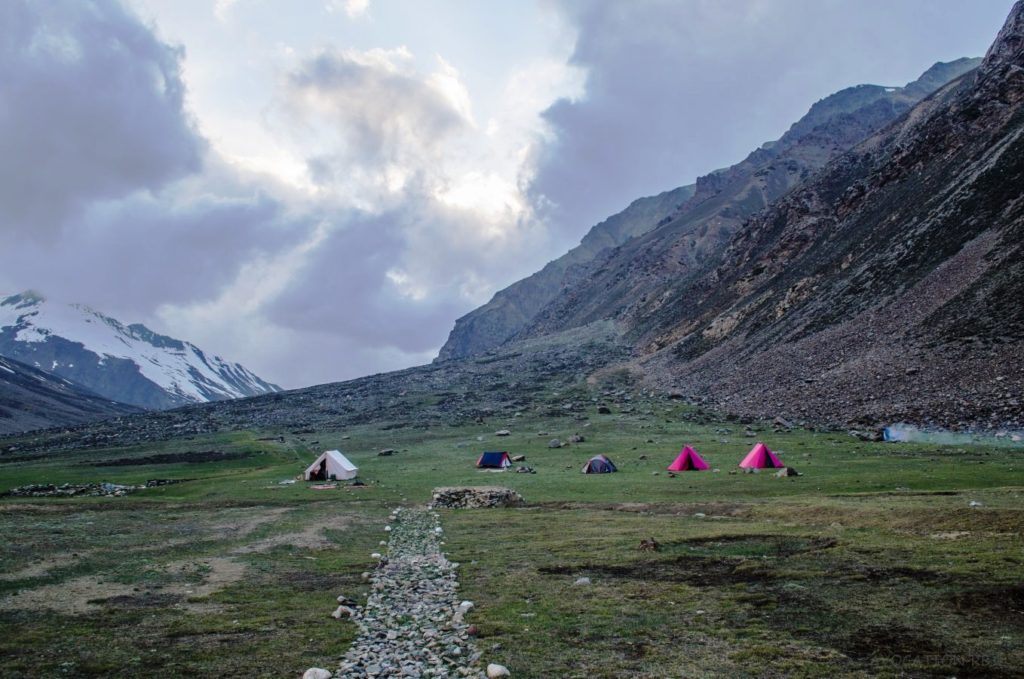 A simple walk for 4 hours takes us to the beautiful Ranikanda camp site at 3700m which is situated just few metres away from Baspa river. Where we faced rain, a little headache, cold and dramatic sky.