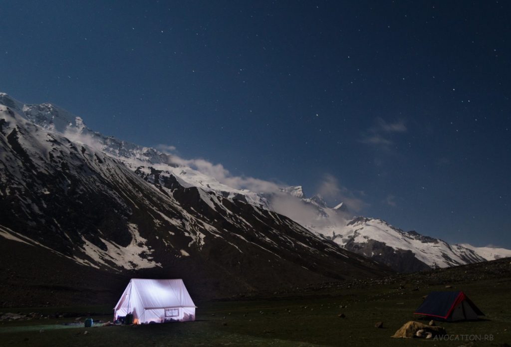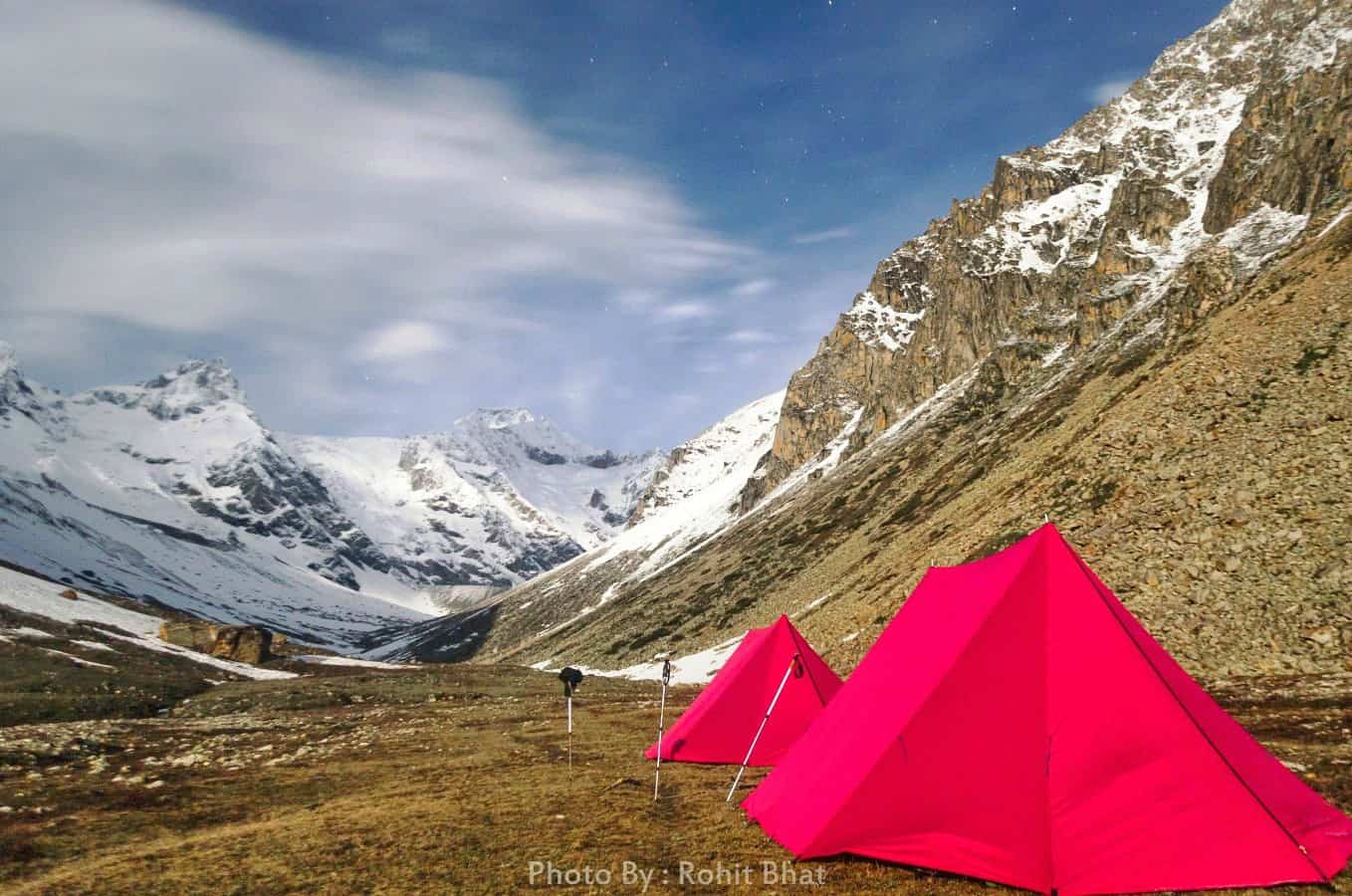 I was the last one to sleep after taking a few night shots of heaven, Kyarkoti. In fact, all the nights at every camp have been beautiful for us, but this place beats all. As soon as I entered my sleeping and locked the chains of the tent, there was a scratching sound outside the tent. As if, someone/thing is scratching with hands on the outer layer of the tent. Initially, I thought someone was doing mischief among us, but everyone had slept by that time. I woke up and I switched on my tent light, no sounds! Again, I did not bother to wake up my tent mates as they all were snoring too loud. The sound of scratching continued for 2-3 hours that night and that was my last sleepless night of the entire journey.
