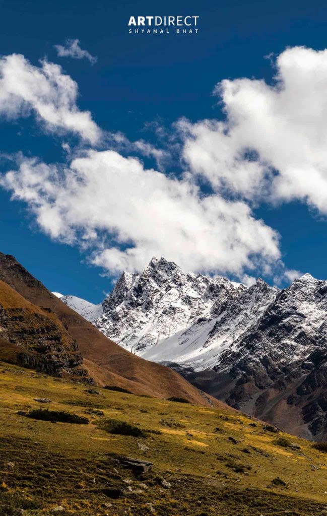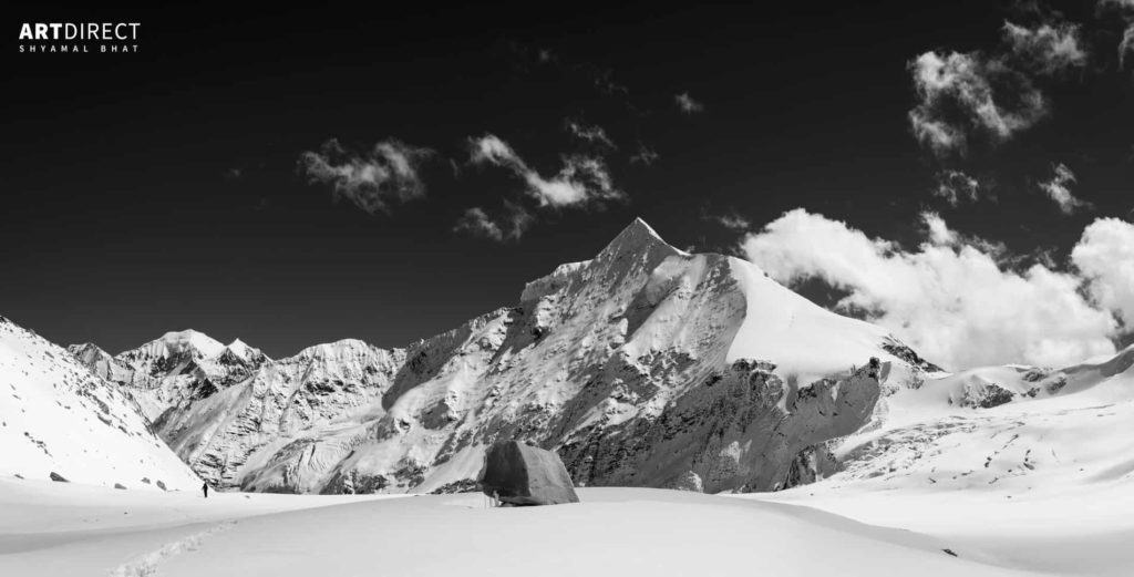 When choosing to do at least one high altitude trek in the Himalayas per year, the main deciding factor for me, obviously, is the number of peaks in the trail. Next, wot I look for is different landscapes and terrains. It helps if we have more variety like this one: from lush Meadows, glaciers, large snowfields to high altitude deserts (devoid of vegetation)! This gives more options for landscape photography, even though this particular one is less perfect in terms of visual balance. But then that’s the challenge: you need to capture wot is out there!