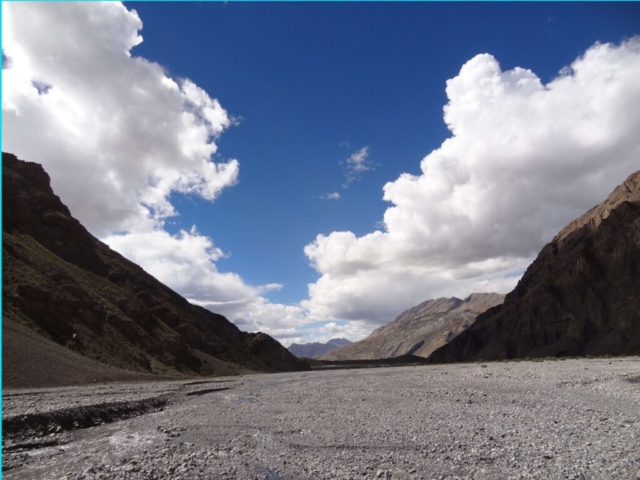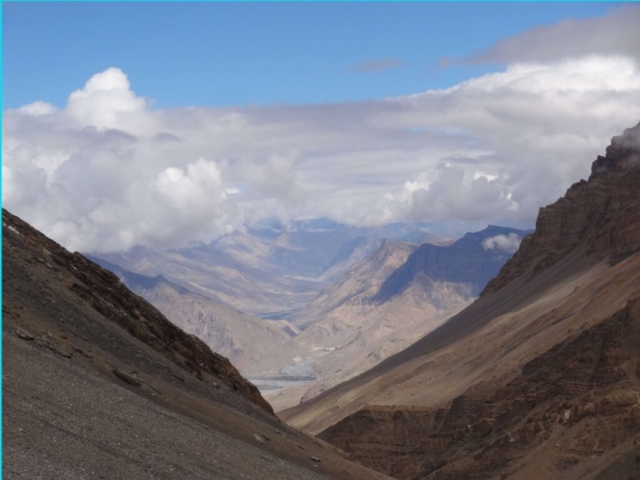 One slip in these landslide areas may result in one going straight down into the raging river (a good 60-70M below). One also has to cross the Sumdo Nala from its true right to its true left bank. The river crossing is fairly tough as well. Once on the true left bank, the route traverses across a rocky valley side high above the river.