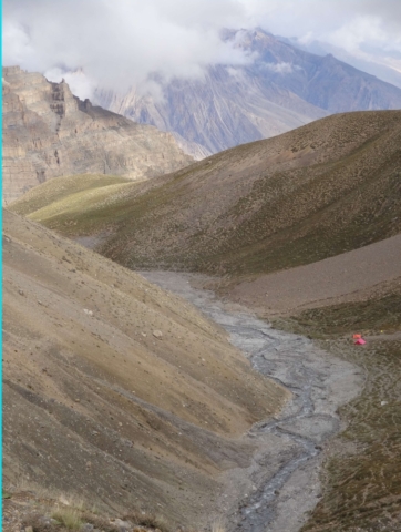 In a lot of the places, the trail (on the true left bank) is hardly visible and often landslide ridden and very dangerous. One has to have very high concentration while walking this trail. To compound matters, the camping spots (from the base of the pass on the Kinnaur side till Ropa village) are very few and even those do not have clean water close by (the water in the Nala would be muddy).