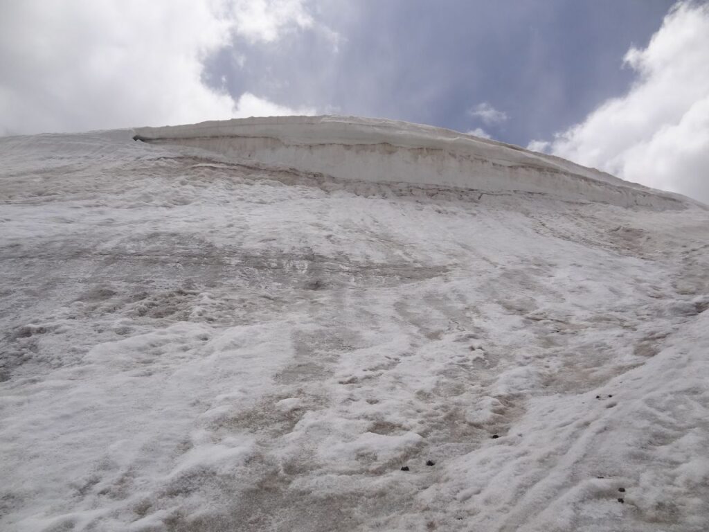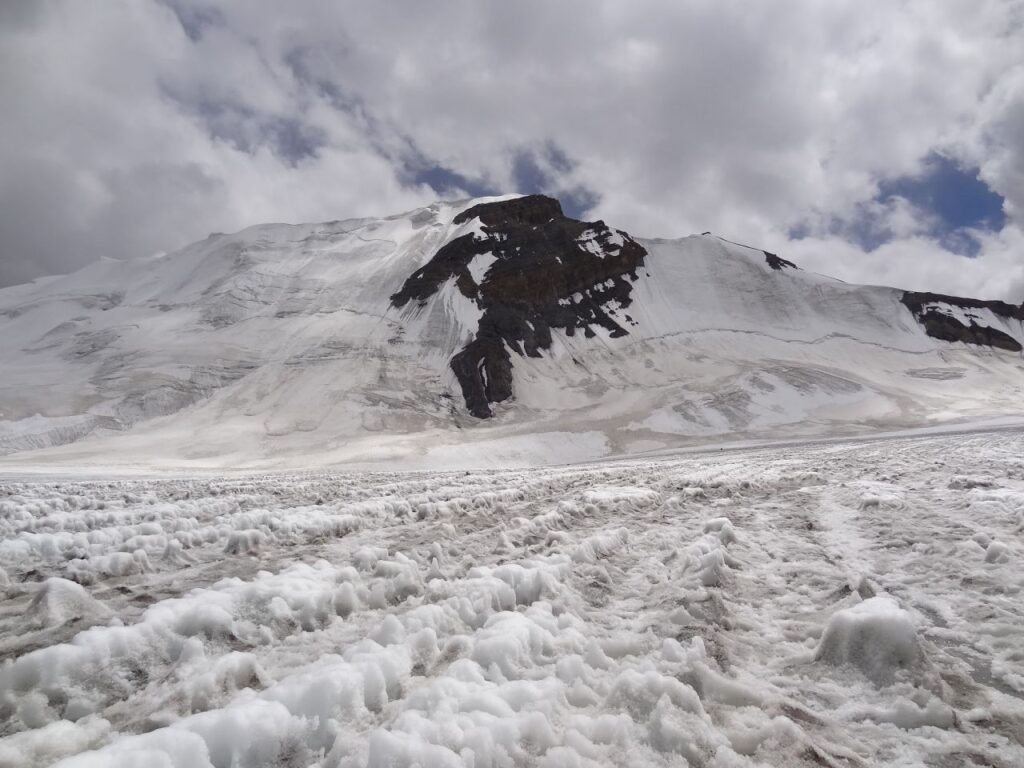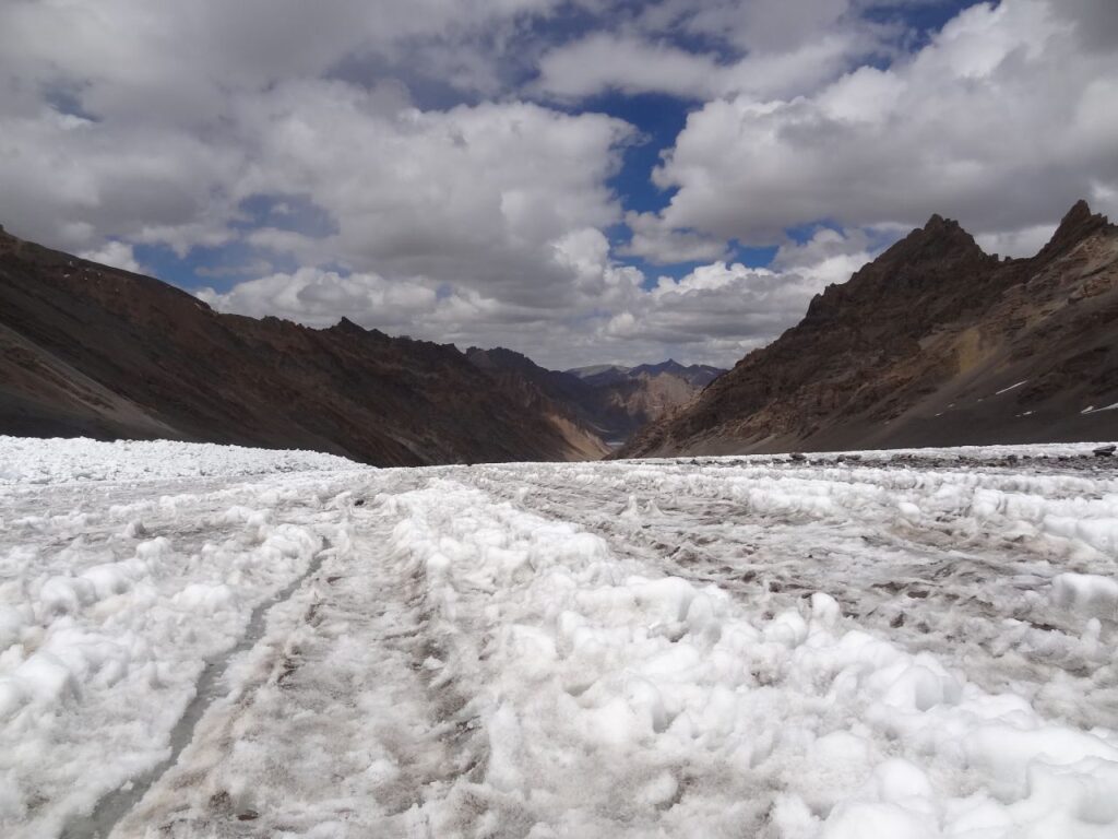 There were spectacular views from the Parang-La pass. After trying to capture the beauty in the camera we were off by 2 p.m. On either side, we were flanked by snow-covered glaciers and walls of ice. We had judged — based on footmarks — that the path must be through the snow-covered central area.