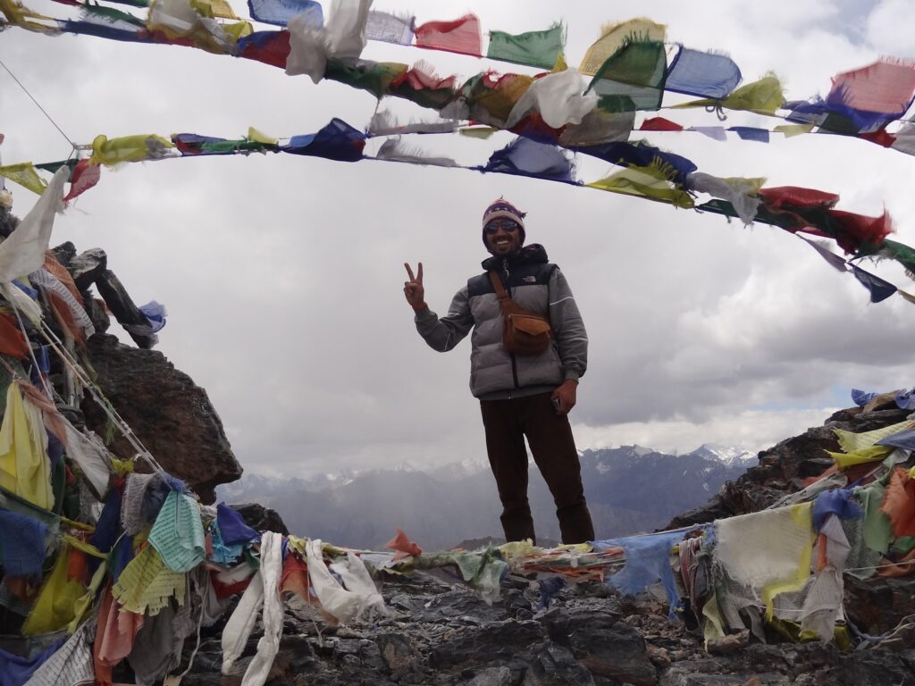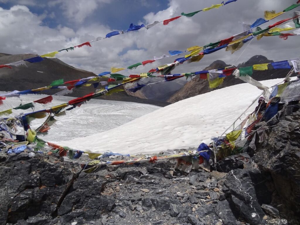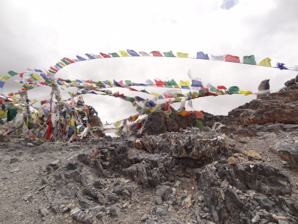 After a quick stop for tea, courtesy of the army, we continued our ascent towards the pass. It took us about 2.5-3 hours (around 1.30 pm) to get to the Parang-la pass (~5600 M), marked by cairns and prayer flags.