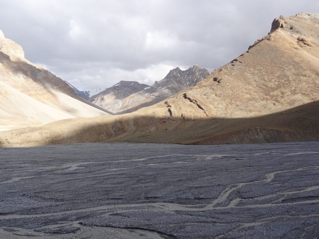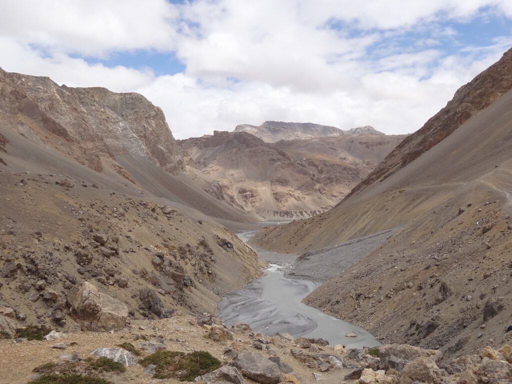 Finally, one could spot the trail (with cairns) among the rock strewn banks of Parang (Pare Chu) river, which was formed by the confluence of the several ice-cold streams emanating from the glacier. On the banks of the river where it started flattening out we decided to pause & have some coffee/maggi to reinvigorate ourselves after the experience of the past 2-3 hours.