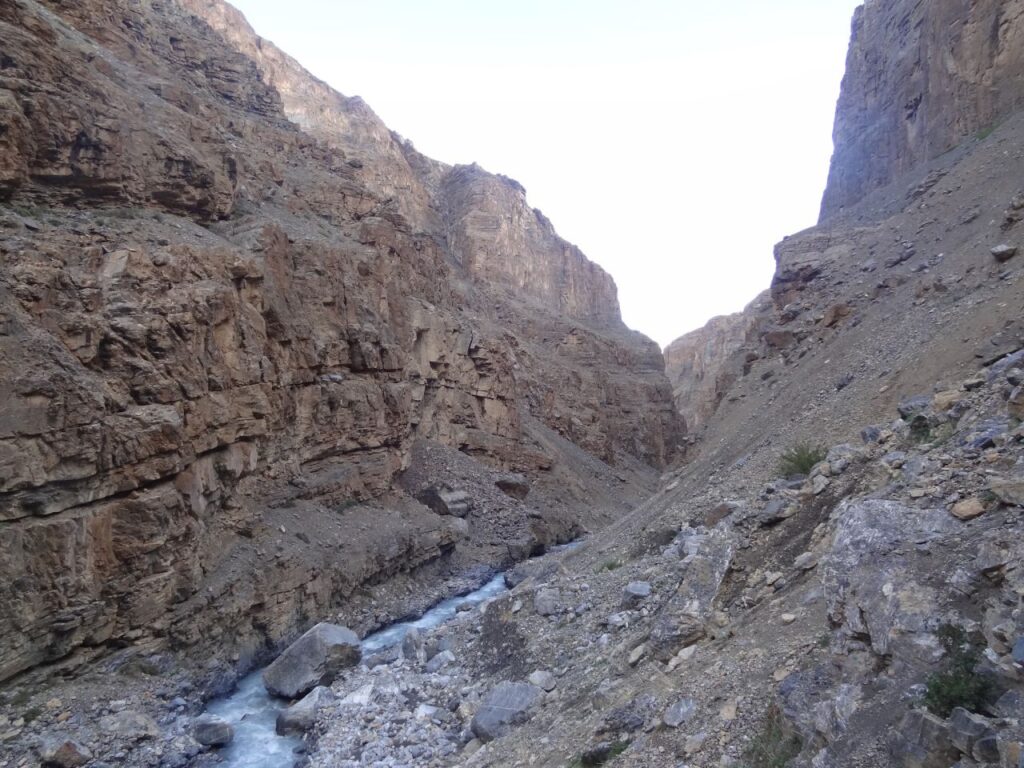 We got so put off that we decided that let us pack up (around 4 pm) and walk a bit further – in hindsight a wise decision. From Thaltak there is a steep descent to the Rug Lungpa and then for the next few hours, one walks amidst deep gorges along the river. Reminded me of the stretch of my trek along the Tsarap river from Phugtal to Tantak last year (2011).