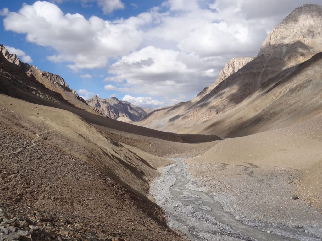 The Pare Chu continues onto Tibet and then re-enters India, feeding into Tso Moriri. Crossing the Pare Chu river is not easy. For a couple of steps, we had to battle strong currents in thigh high water. The rest was pretty crossable. Once we got across the Pare Chu, we stopped to rest our icy cold feet and change our wet socks before marching on.