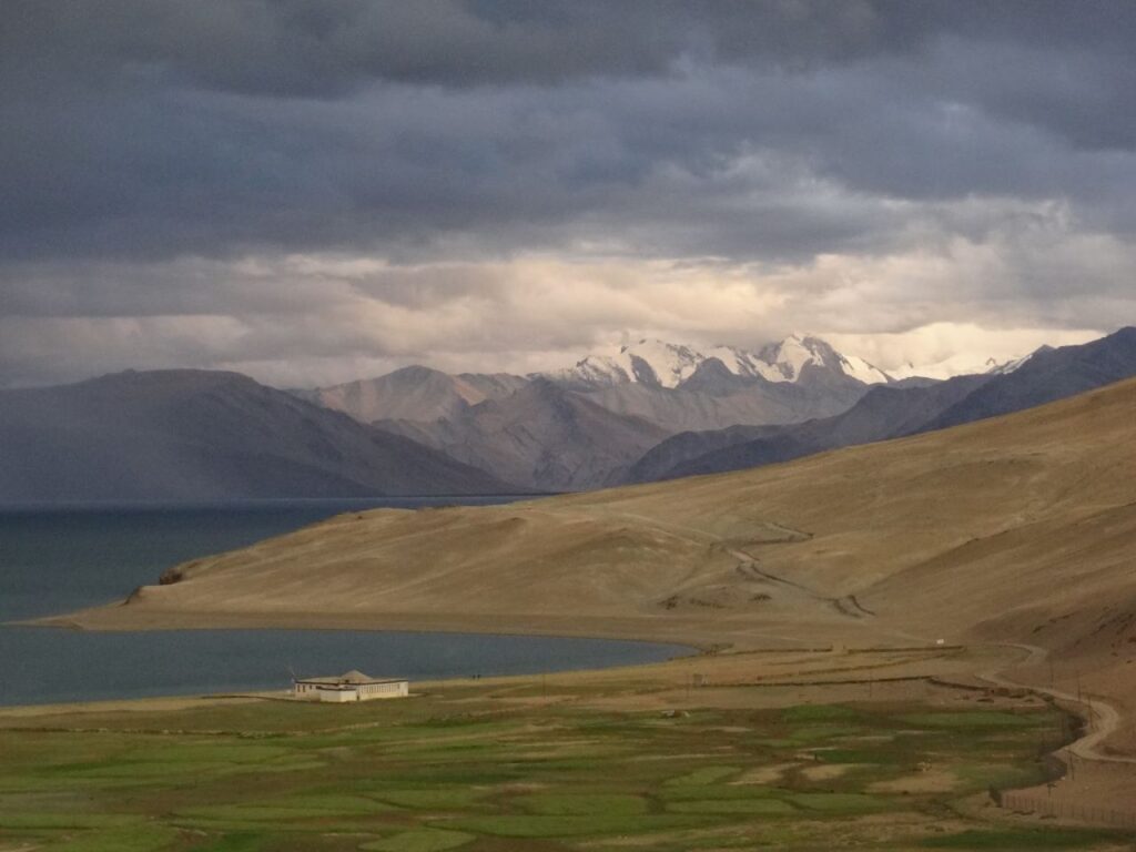 We started walking at 10:00 a.m on the road. After about 30-45 mins of walking a dumper truck carrying grills of iron (the ones used to prevent landslides on the road) gave us a lift. We sat on the iron grills bracing ourselves for a long bumpy ride. The truck dropped us off at the end of Tso Moriri lake as he was headed to Chumar –the last village on the other side of the Tso Moriri lake bordering Tibet.