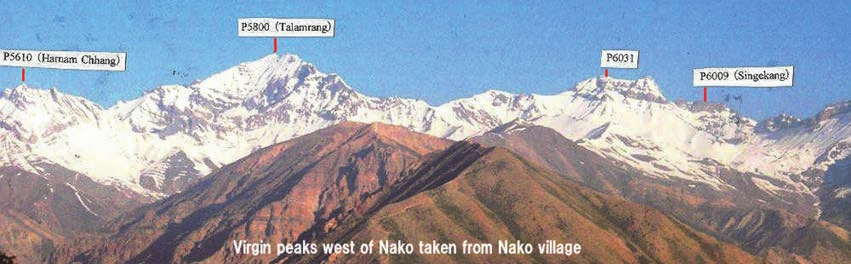 P6000 (Singekang), P6031, P5800 (Talanrang), and P5610 (Harman Chhang) are standing on the top of the Lipak Lungpa branch. These peaks are still untrodden virgin peaks, according to the IMF website.