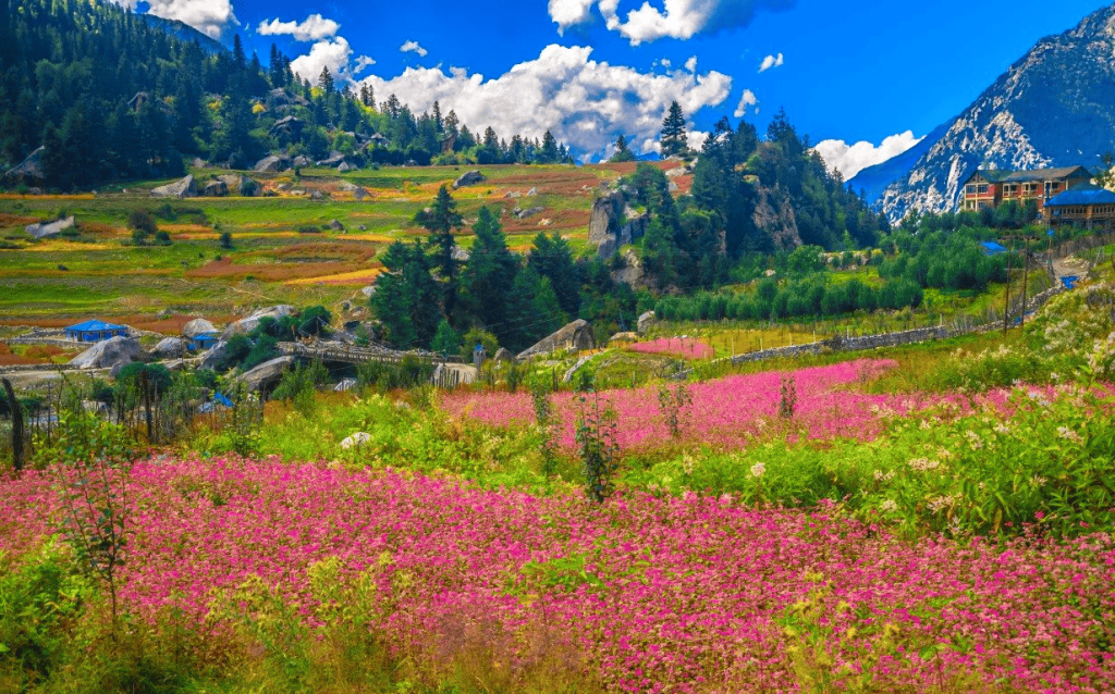 This period offer pleasant, comfortable weather. Days are mild and night are plesantly cool, making it the best season for sightseeing, hiking, trekking, and enjoying the natural beauty of the valley. From mid-April to mid-May, the villages of Sangla, Batseri, and Rakchham are beautifully transformed as their apricot orchards burst into pink and peachy blooms. - October to mid-November: During October and early November in Kinnaur, days remain comfortable with crisp, clear weather, while nights and early mornings turn noticeably cold. By late October and into early November, temperatures often begin to dip to freezing levels at night, especially in higher-altitude regions like Chhitkul and Rakchham.