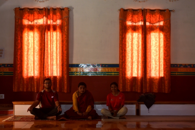 The next day, we visited the Sangla Buddha temple/monastery. One of the monks in the monastery had done a part of his monk studies in Bylakuppe, and he got immersed into a long chat with us after he came to know that Gautam and Aashish were from Bangalore.
