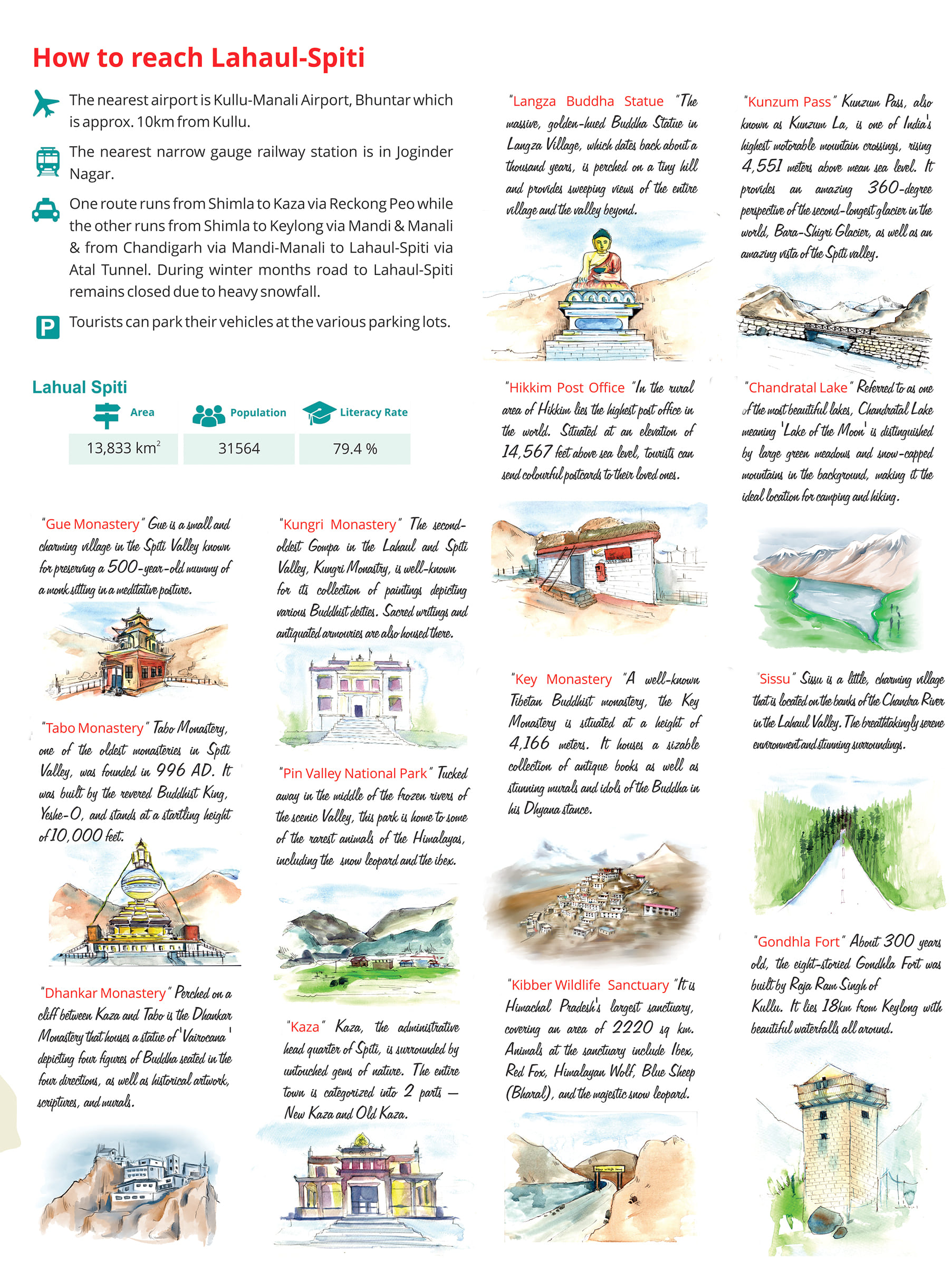 Buddhist monasteries of Ki, Kaza, Kungri, and Tabo.